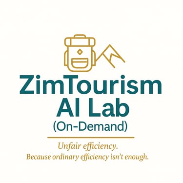 The ZimTourism AI Lab (On-Demand) is a flexible, executive-level training program that helps tourism and hospitality professionals understand and apply Artificial Intelligence to improve efficiency, sustainability, and competitiveness. It’s available anytime—customized for your organization’s needs.
